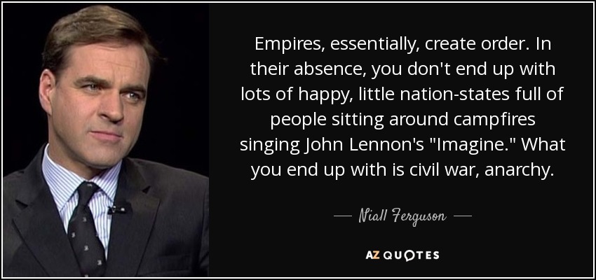 Empires, essentially, create order. In their absence, you don't end up with lots of happy, little nation-states full of people sitting around campfires singing John Lennon's "Imagine." What you end up with is civil war, anarchy.