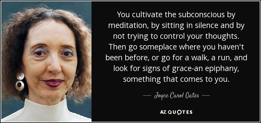 You cultivate the subconscious by meditation, by sitting in silence and by not trying to control your thoughts. Then go someplace where you haven't been before, or go for a walk, a run, and look for signs of grace-an epiphany, something that comes to you.