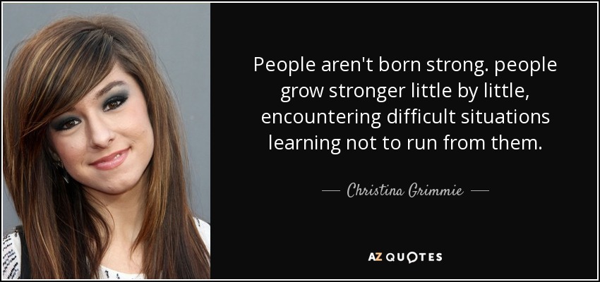People aren't born strong. people grow stronger little by little, encountering difficult situations learning not to run from them.