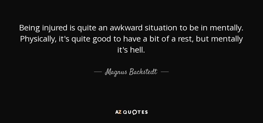 Being injured is quite an awkward situation to be in mentally. Physically, it's quite good to have a bit of a rest, but mentally it's hell.