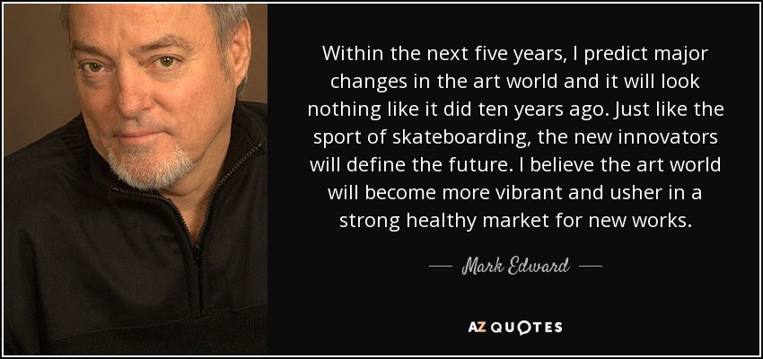 Within the next five years, I predict major changes in the art world and it will look nothing like it did ten years ago. Just like the sport of skateboarding, the new innovators will define the future. I believe the art world will become more vibrant and usher in a strong healthy market for new works.