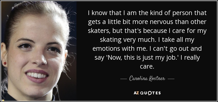 I know that I am the kind of person that gets a little bit more nervous than other skaters, but that's because I care for my skating very much. I take all my emotions with me. I can't go out and say 'Now, this is just my job.' I really care.