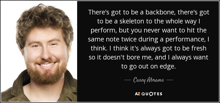 There's got to be a backbone, there's got to be a skeleton to the whole way I perform, but you never want to hit the same note twice during a performance, I think. I think it's always got to be fresh so it doesn't bore me, and I always want to go out on edge.