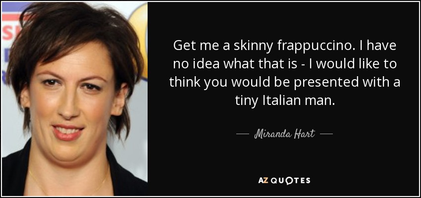 Get me a skinny frappuccino. I have no idea what that is - I would like to think you would be presented with a tiny Italian man.
