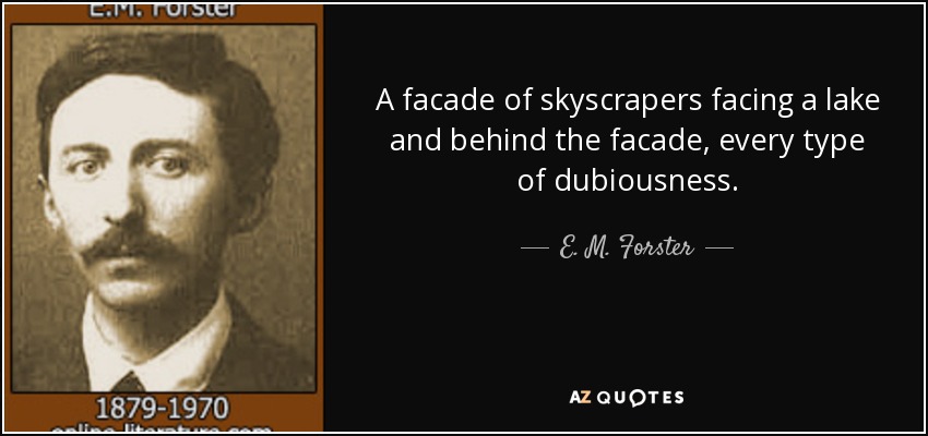 A facade of skyscrapers facing a lake and behind the facade, every type of dubiousness.