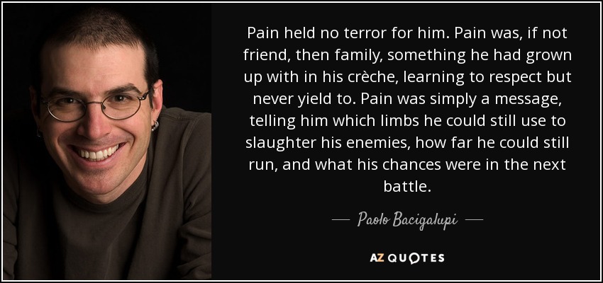 Pain held no terror for him. Pain was, if not friend, then family, something he had grown up with in his crèche, learning to respect but never yield to. Pain was simply a message, telling him which limbs he could still use to slaughter his enemies, how far he could still run, and what his chances were in the next battle.