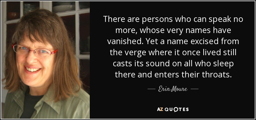 There are persons who can speak no more, whose very names have vanished. Yet a name excised from the verge where it once lived still casts its sound on all who sleep there and enters their throats.