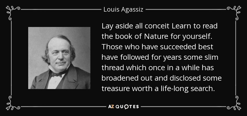 Lay aside all conceit Learn to read the book of Nature for yourself. Those who have succeeded best have followed for years some slim thread which once in a while has broadened out and disclosed some treasure worth a life-long search.