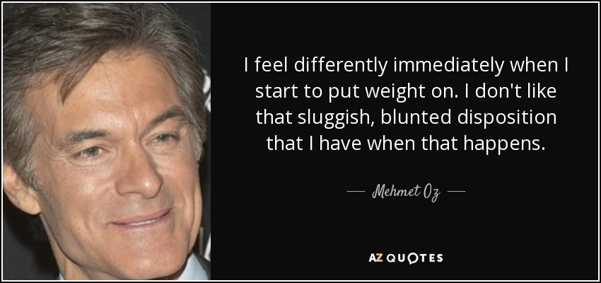 I feel differently immediately when I start to put weight on. I don't like that sluggish, blunted disposition that I have when that happens.