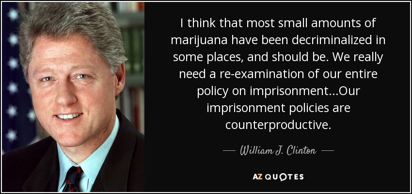 I think that most small amounts of marijuana have been decriminalized in some places, and should be. We really need a re-examination of our entire policy on imprisonment...Our imprisonment policies are counterproductive.