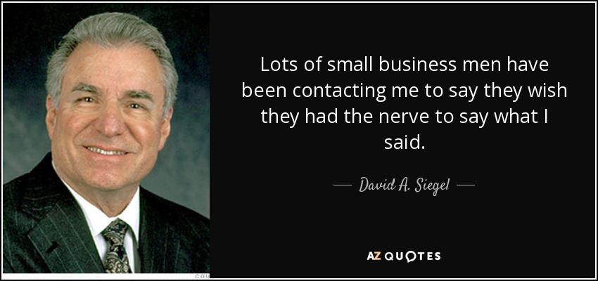 Lots of small business men have been contacting me to say they wish they had the nerve to say what I said.