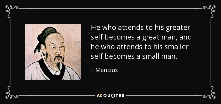 He who attends to his greater self becomes a great man, and he who attends to his smaller self becomes a small man.