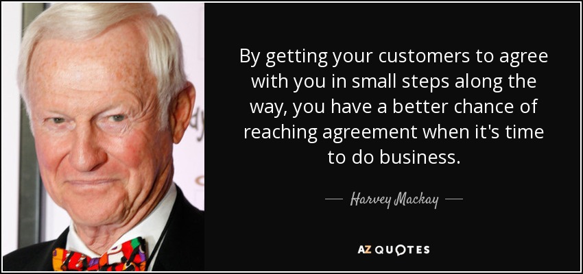 By getting your customers to agree with you in small steps along the way, you have a better chance of reaching agreement when it's time to do business.
