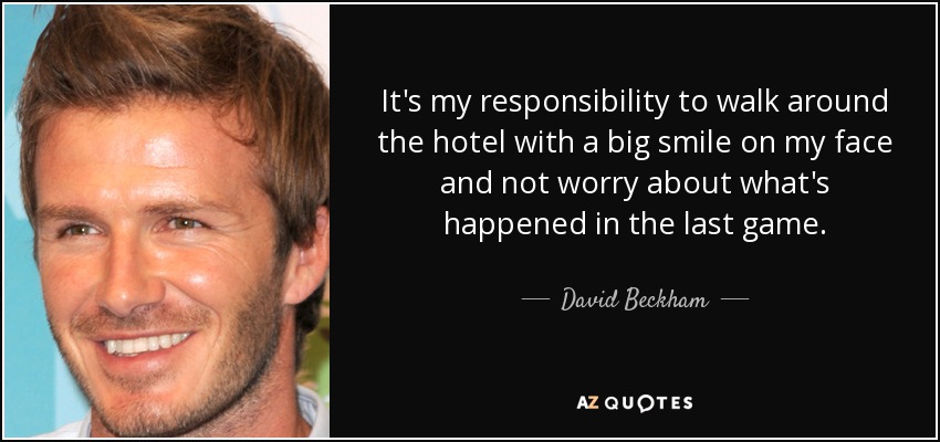 It's my responsibility to walk around the hotel with a big smile on my face and not worry about what's happened in the last game.