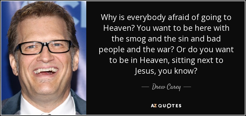 Why is everybody afraid of going to Heaven? You want to be here with the smog and the sin and bad people and the war? Or do you want to be in Heaven, sitting next to Jesus, you know?