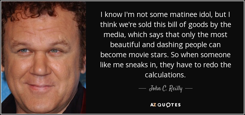 I know I'm not some matinee idol, but I think we're sold this bill of goods by the media, which says that only the most beautiful and dashing people can become movie stars. So when someone like me sneaks in, they have to redo the calculations.