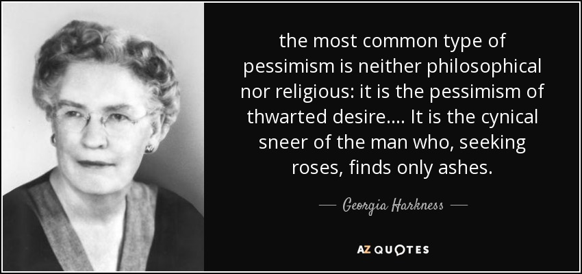 the most common type of pessimism is neither philosophical nor religious: it is the pessimism of thwarted desire. ... It is the cynical sneer of the man who, seeking roses, finds only ashes.