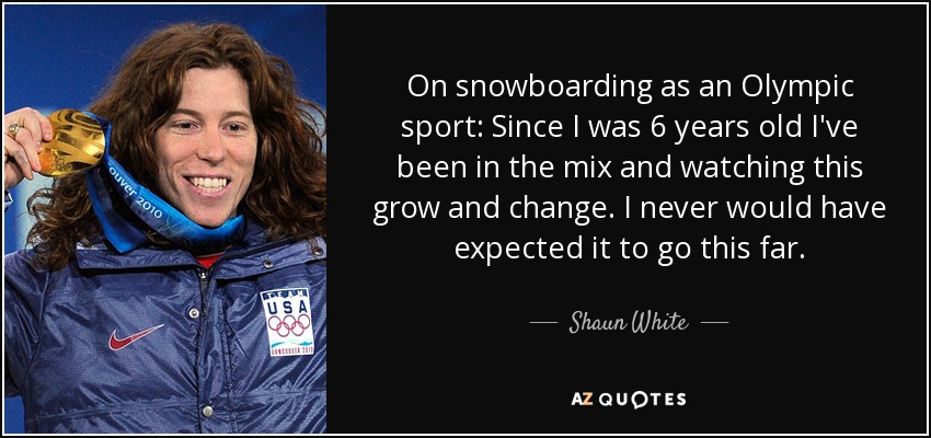 On snowboarding as an Olympic sport: Since I was 6 years old I've been in the mix and watching this grow and change. I never would have expected it to go this far.