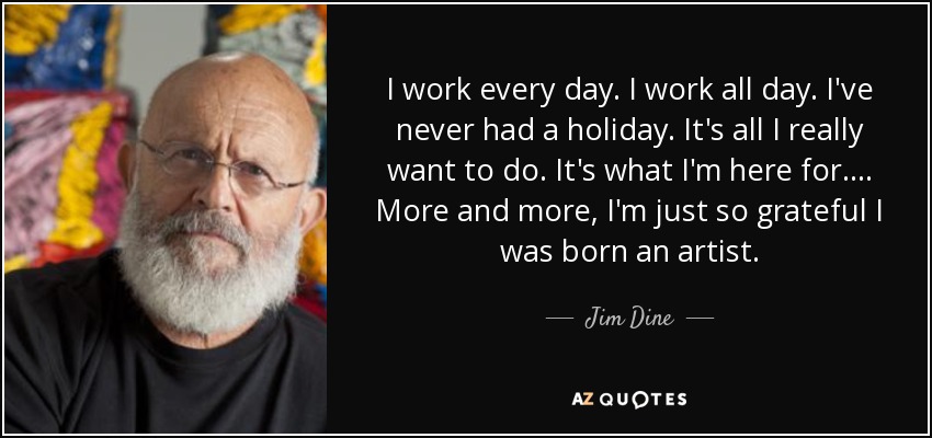 I work every day. I work all day. I've never had a holiday. It's all I really want to do. It's what I'm here for. . . . More and more, I'm just so grateful I was born an artist.