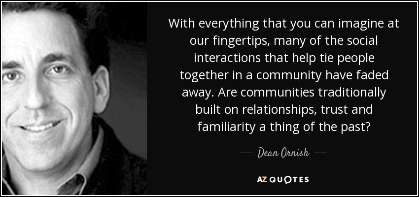With everything that you can imagine at our fingertips, many of the social interactions that help tie people together in a community have faded away. Are communities traditionally built on relationships, trust and familiarity a thing of the past?
