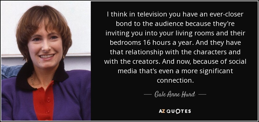 I think in television you have an ever-closer bond to the audience because they're inviting you into your living rooms and their bedrooms 16 hours a year. And they have that relationship with the characters and with the creators. And now, because of social media that's even a more significant connection.