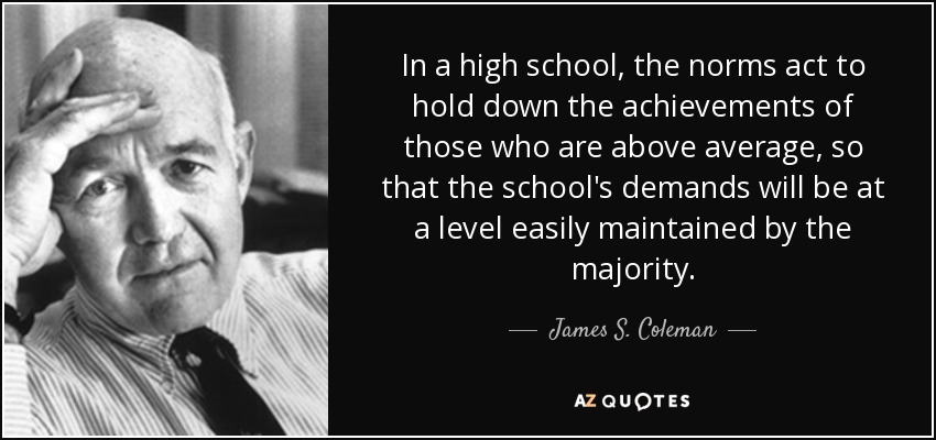 In a high school, the norms act to hold down the achievements of those who are above average, so that the school's demands will be at a level easily maintained by the majority.