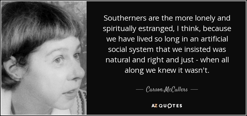 Southerners are the more lonely and spiritually estranged, I think, because we have lived so long in an artificial social system that we insisted was natural and right and just - when all along we knew it wasn't.