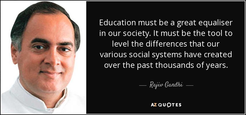 Education must be a great equaliser in our society. It must be the tool to level the differences that our various social systems have created over the past thousands of years.