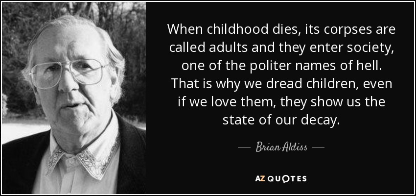 When childhood dies, its corpses are called adults and they enter society, one of the politer names of hell. That is why we dread children, even if we love them, they show us the state of our decay.
