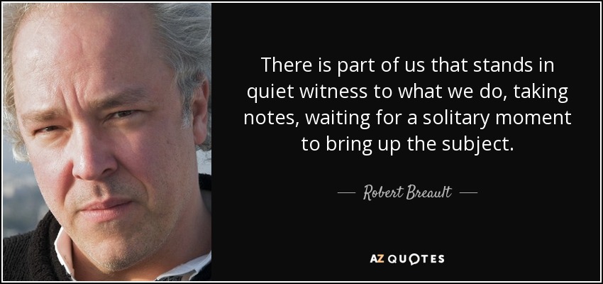 There is part of us that stands in quiet witness to what we do, taking notes, waiting for a solitary moment to bring up the subject.