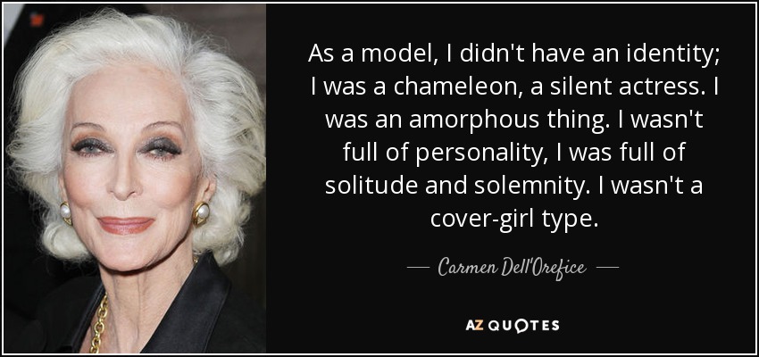 As a model, I didn't have an identity; I was a chameleon, a silent actress. I was an amorphous thing. I wasn't full of personality, I was full of solitude and solemnity. I wasn't a cover-girl type.