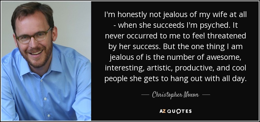I'm honestly not jealous of my wife at all - when she succeeds I'm psyched. It never occurred to me to feel threatened by her success. But the one thing I am jealous of is the number of awesome, interesting, artistic, productive, and cool people she gets to hang out with all day.