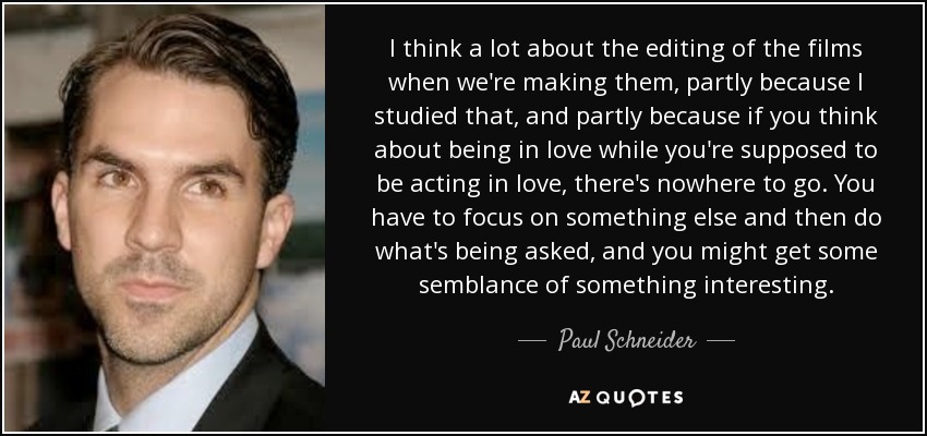 I think a lot about the editing of the films when we're making them, partly because I studied that, and partly because if you think about being in love while you're supposed to be acting in love, there's nowhere to go. You have to focus on something else and then do what's being asked, and you might get some semblance of something interesting.