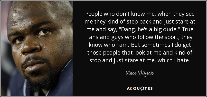 People who don't know me, when they see me they kind of step back and just stare at me and say, "Dang, he's a big dude." True fans and guys who follow the sport, they know who I am. But sometimes I do get those people that look at me and kind of stop and just stare at me, which I hate.