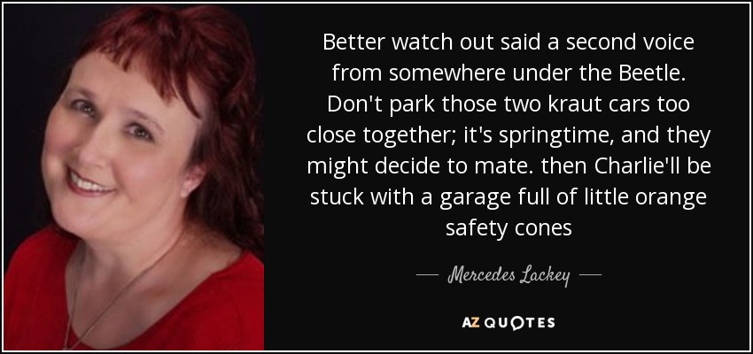 Better watch out said a second voice from somewhere under the Beetle. Don't park those two kraut cars too close together; it's springtime, and they might decide to mate. then Charlie'll be stuck with a garage full of little orange safety cones