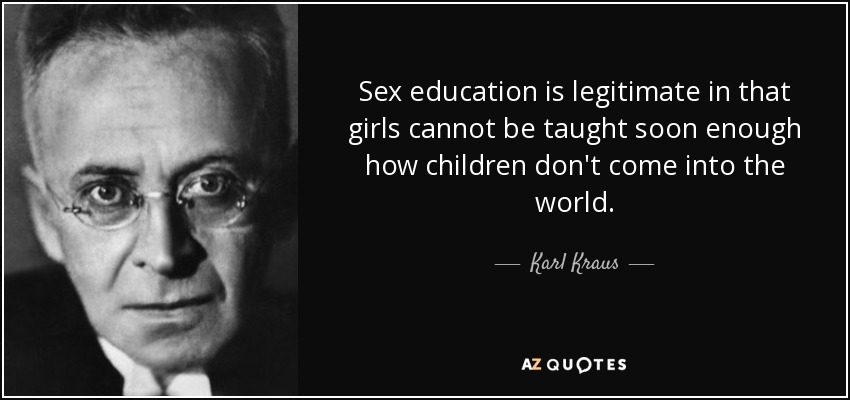 Sex education is legitimate in that girls cannot be taught soon enough how children don't come into the world.