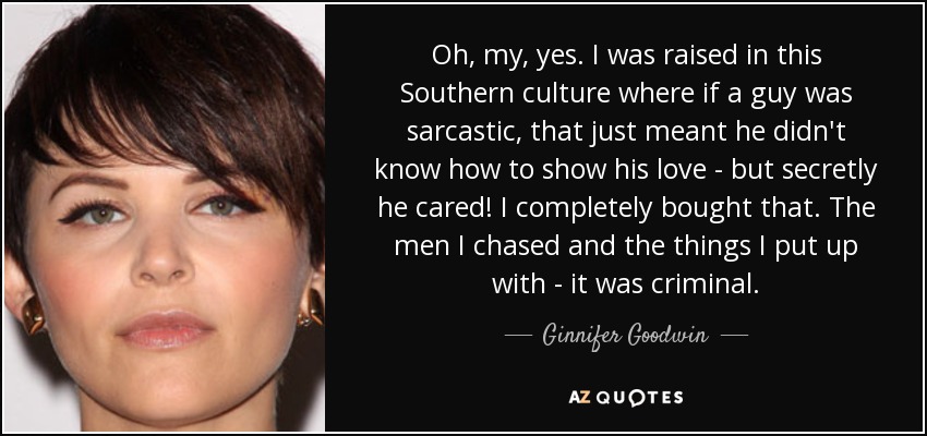 Oh, my, yes. I was raised in this Southern culture where if a guy was sarcastic, that just meant he didn't know how to show his love - but secretly he cared! I completely bought that. The men I chased and the things I put up with - it was criminal.
