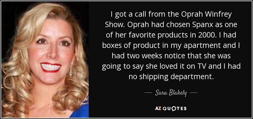 I got a call from the Oprah Winfrey Show. Oprah had chosen Spanx as one of her favorite products in 2000. I had boxes of product in my apartment and I had two weeks notice that she was going to say she loved it on TV and I had no shipping department.