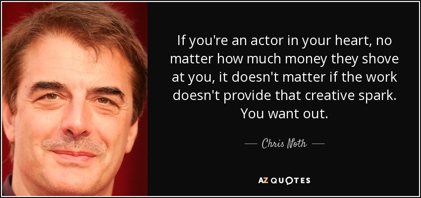 If you're an actor in your heart, no matter how much money they shove at you, it doesn't matter if the work doesn't provide that creative spark. You want out.