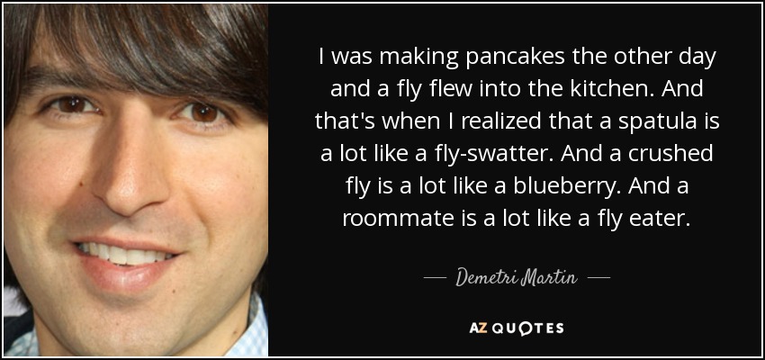 I was making pancakes the other day and a fly flew into the kitchen. And that's when I realized that a spatula is a lot like a fly-swatter. And a crushed fly is a lot like a blueberry. And a roommate is a lot like a fly eater.