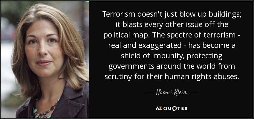 Terrorism doesn't just blow up buildings; it blasts every other issue off the political map. The spectre of terrorism - real and exaggerated - has become a shield of impunity, protecting governments around the world from scrutiny for their human rights abuses.