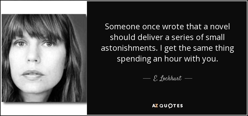 Someone once wrote that a novel should deliver a series of small astonishments. I get the same thing spending an hour with you.