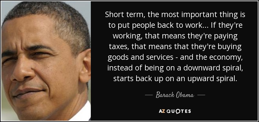 Short term, the most important thing is to put people back to work ... If they're working, that means they're paying taxes, that means that they're buying goods and services - and the economy, instead of being on a downward spiral, starts back up on an upward spiral.