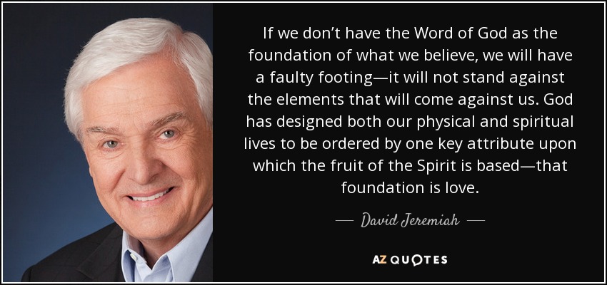 If we don’t have the Word of God as the foundation of what we believe, we will have a faulty footing—it will not stand against the elements that will come against us. God has designed both our physical and spiritual lives to be ordered by one key attribute upon which the fruit of the Spirit is based—that foundation is love.