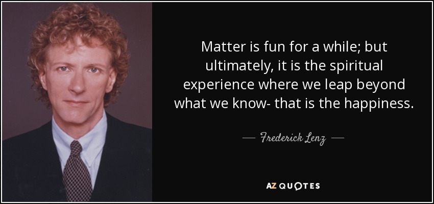 Matter is fun for a while; but ultimately, it is the spiritual experience where we leap beyond what we know- that is the happiness.