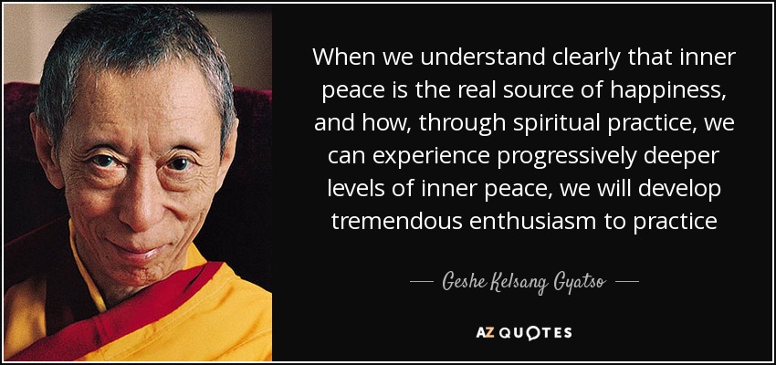When we understand clearly that inner peace is the real source of happiness, and how, through spiritual practice, we can experience progressively deeper levels of inner peace, we will develop tremendous enthusiasm to practice