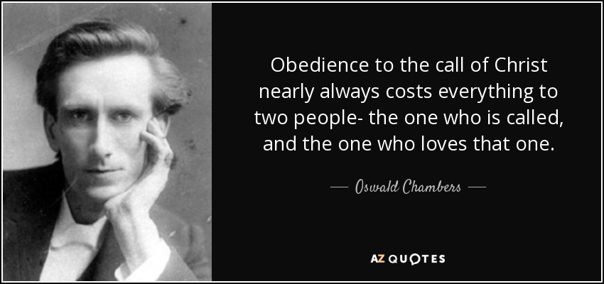 Obedience to the call of Christ nearly always costs everything to two people- the one who is called, and the one who loves that one.