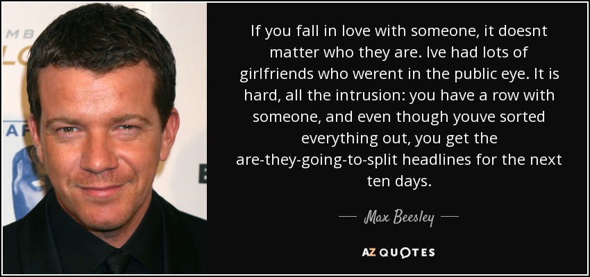 If you fall in love with someone, it doesnt matter who they are. Ive had lots of girlfriends who werent in the public eye. It is hard, all the intrusion: you have a row with someone, and even though youve sorted everything out, you get the are-they-going-to-split headlines for the next ten days.