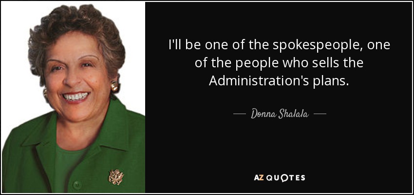 I'll be one of the spokespeople, one of the people who sells the Administration's plans.
