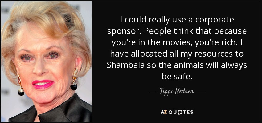 I could really use a corporate sponsor. People think that because you're in the movies, you're rich. I have allocated all my resources to Shambala so the animals will always be safe.